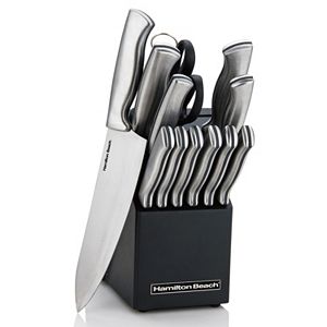 It comes with six kitchen knives, six steak knives, a pair of kitchen shears, a set of rubber spatulas and even farberware knife set. Farberware 15pc stainless steel knife block set.